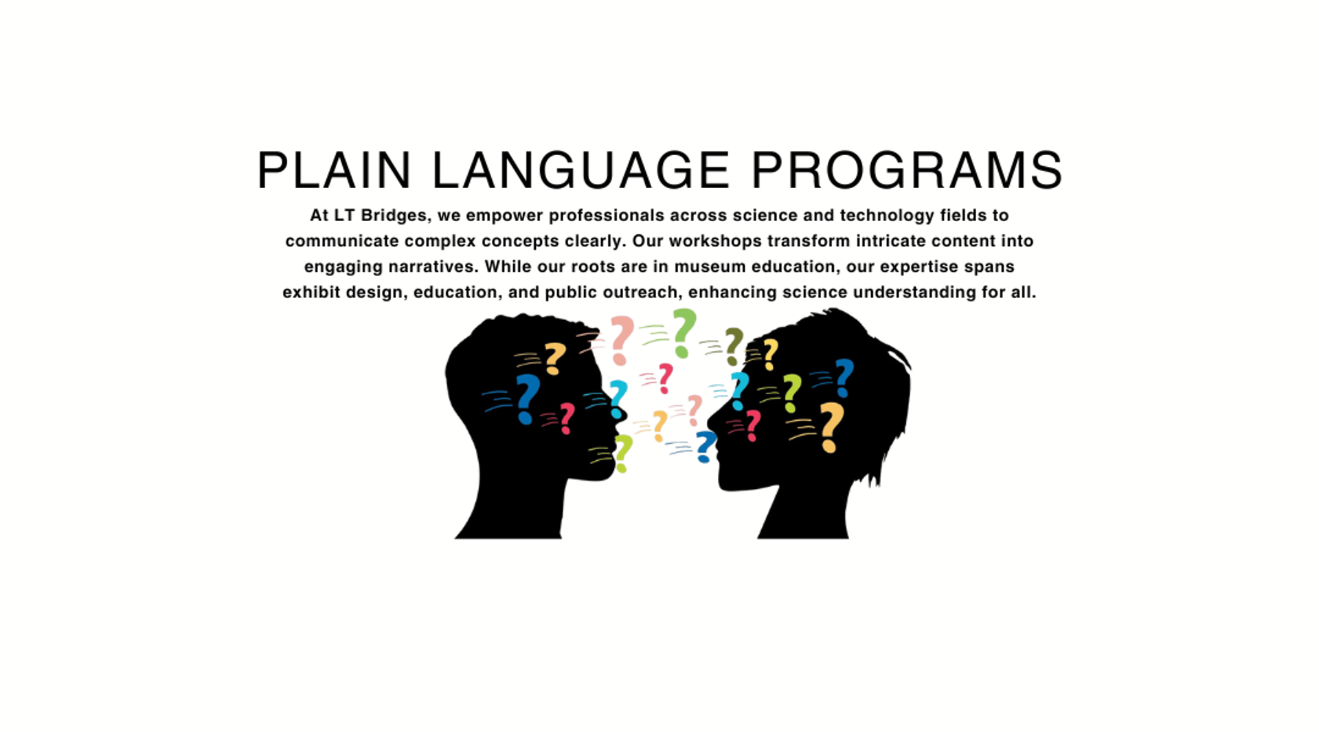 Our expertise extends beyond museum displays. We offer dynamic workshop and training programs tailored to enhance plain language skills, empowering professionals in museums and beyond to effectively communicate complex ideas with simplicity and clarity.